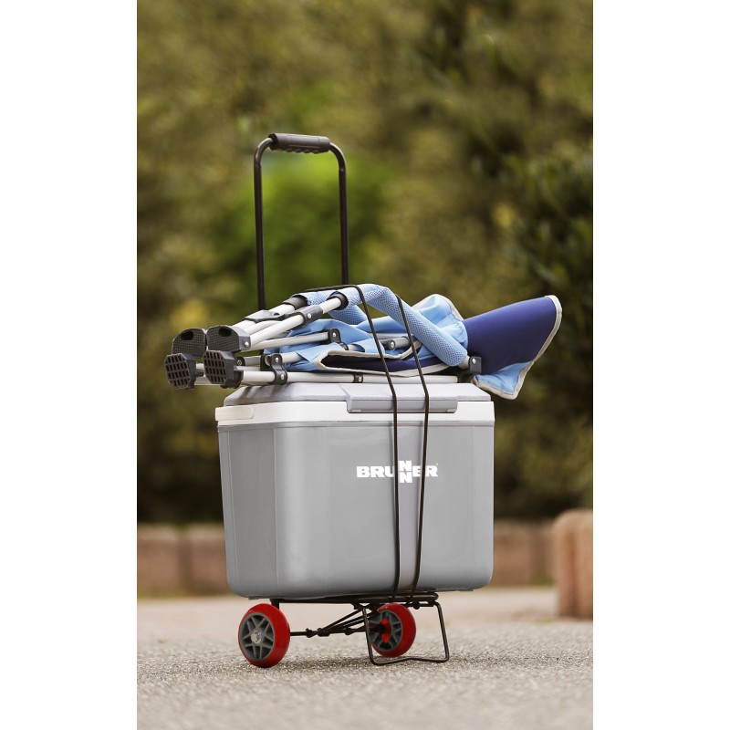 Pratico trolley pieghevole con grandi ruote che rendono possibile l’utilizzo anche su terreni sterrati. Esecuzione leggera e stabile con profilo in acciaio verniciato a polvere. Cinghie di fissaggio inclusi.