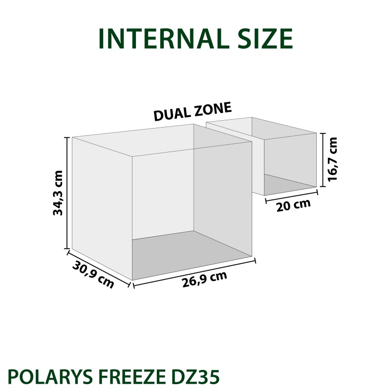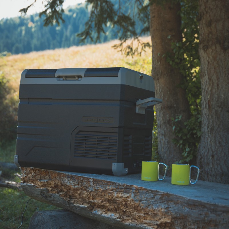 Frigo/congelatore portatile a compressore con Due zone di temperatura regolabili separatamente (Dual Zone) e una batteria staccabile (opzionale). Dotato di resistente corpo in materiale plastico antiurto ad alta capacità isolante ed un display digitale per il controllo della temperatura.