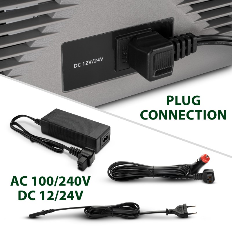 Frigo/congelatore portatile a compressore con scomparto unico dal design moderno e compatto. Dotato di resistente corpo in materiale plastico antiurto ad alta capacità isolante ed un display digitale per il controllo della temperatura.