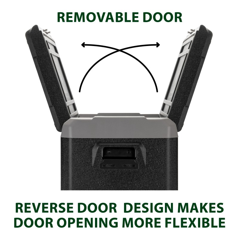 Frigo/congelatore portatile a compressore con scomparto unico dal design moderno e compatto. Dotato di resistente corpo in materiale plastico antiurto ad alta capacità isolante ed un display digitale per il controllo della temperatura.