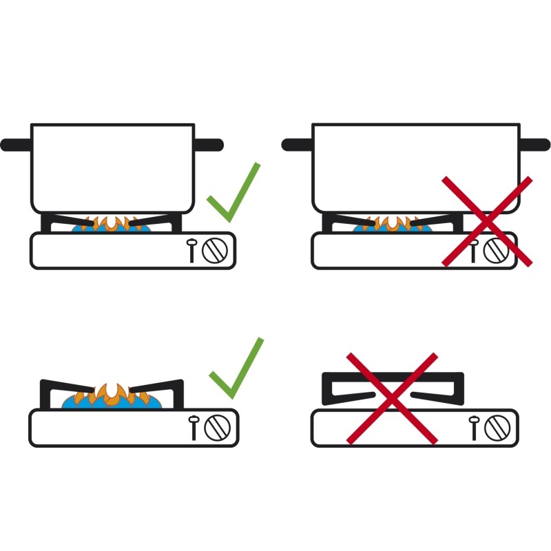 • Griglia di appoggio smaltata nera garantisce stabilità di pentole o padelle da 12 a 26 cm di diam.