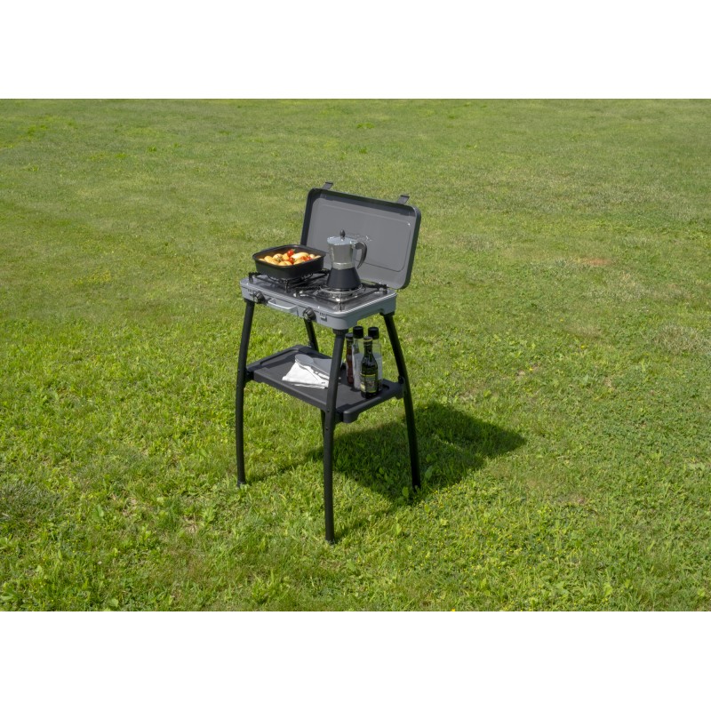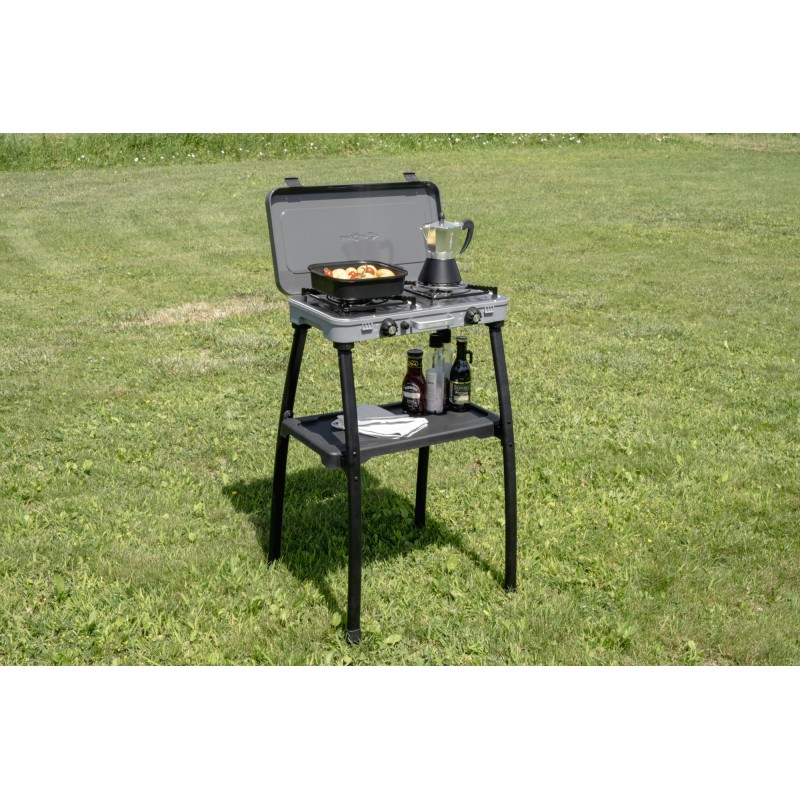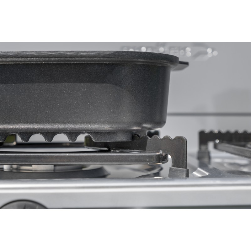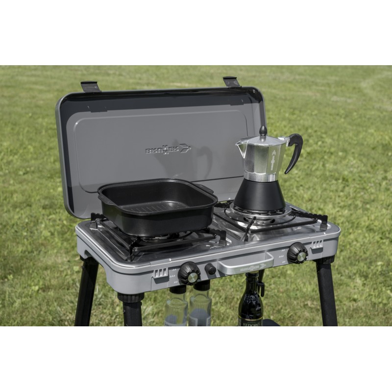 Il Devil Kookmaster Standalone offre la stessa funzionalità impareggiabile del Devil Kookmaster. Con le sue quattro gambe robuste e un comodo vassoio, questa cucina essenziale permette di cucinare in modo professionale anche all'aperto. Il Devil Kookmaster Standalone viene fornito con una piastra di cottura liscia e una piastra di cottura rigata.