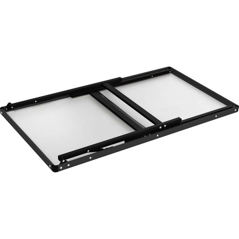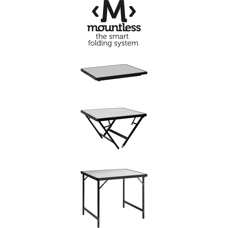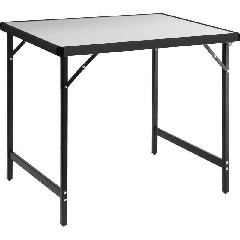 Serie di tavoli con ripiano in alluminio e gambe pieghevoli in acciaio verniciato. Compatti e facili da trasportare. L'impiego di materiali di alta qualità garantisce un utilizzo duraturo nel tempo.