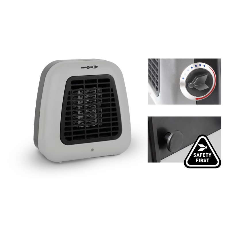 Termoventilatore compatto in ceramica con elemento riscaldante PTC. Corpo in solido materiale plastico. Ideale per l'uso in caravan, camper o verande. Dotato di un regolatore termostatico. Il ventilatore integrato garantisce un'efficiente distribuzione del calore.