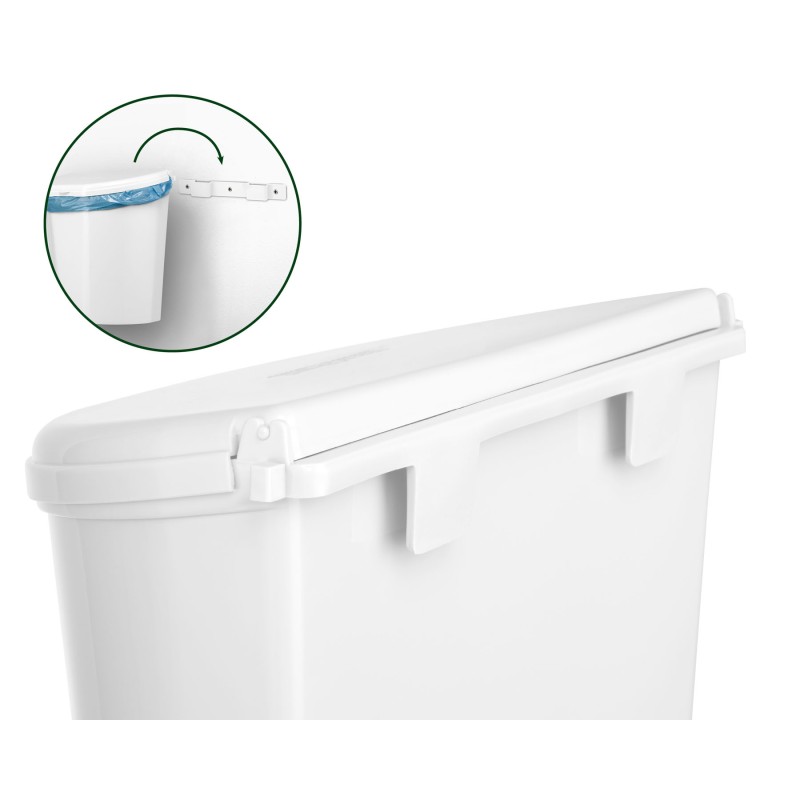 Cestino per rifiuti pensile con coperchio ad apertura manuale dal design curato, innovativo ed estremamente moderno. Molto utile e pratico per eliminare i piccoli rifiuti quotidiani su camper, caravan, barche e vetture in genere. Realizzato completamente in robusto materiale plastico.