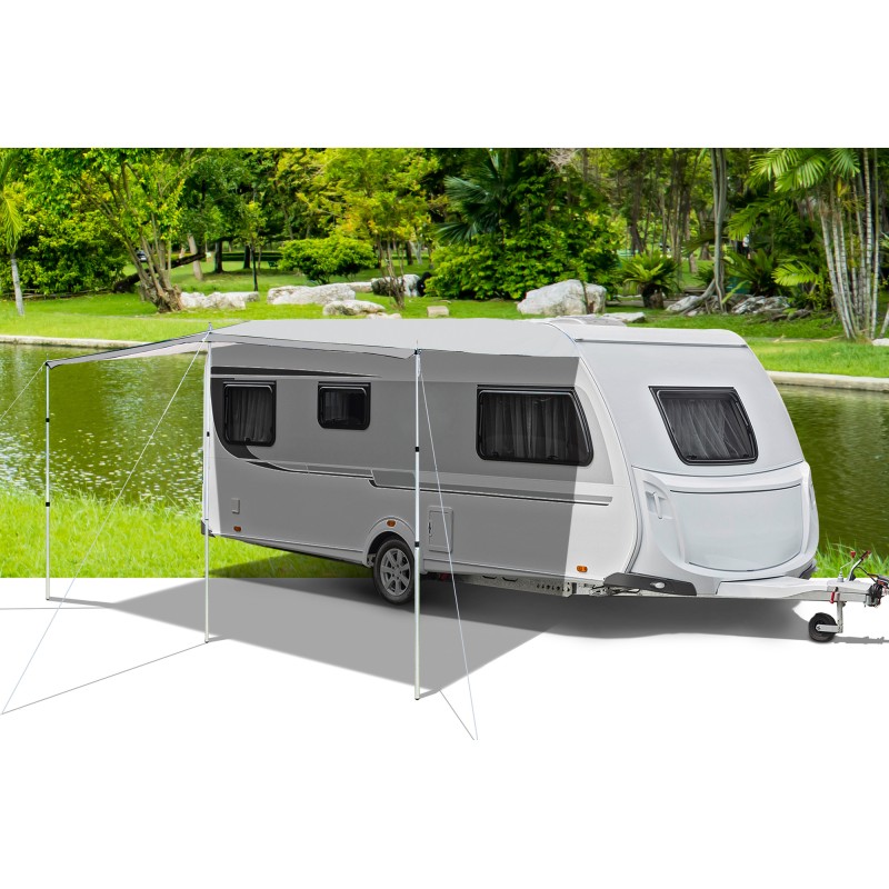 Classico telo ombra per caravan con profilo di scorrimento. Completo di pali verticali regolabili.
