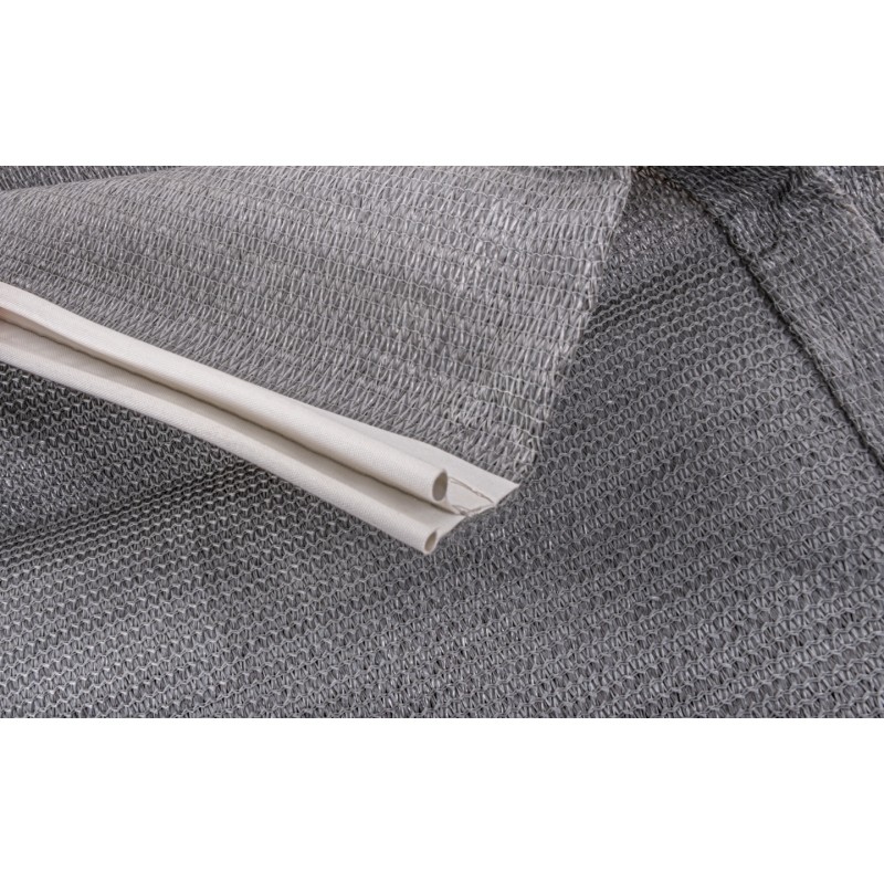 Comoda vela parasole in tessuto sintetico resistente ai raggi UV. Bordata su tutto il perimetro, con occhielli. Facile da montare sulla guida di scorrimento di roulotte, camper, furgoni o autobus. Adatta alla maggior parte dei modelli di verande comunemente in commercio. Con picchetti e corde di fissaggio.