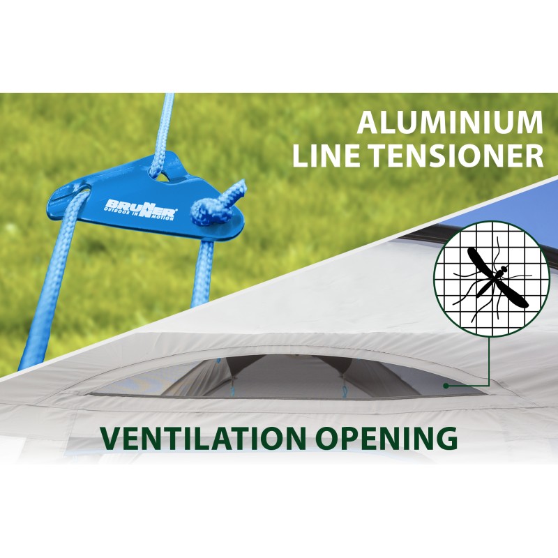 La Brunner Indipendence è una tenda universale autoportante progettata per portelloni posteriori di minibus e van. Grazie al suo innovativo telaio gonfiabile, può essere montata in un attimo, senza la necessità di utilizzare pali tradizionali. Una volta montata, si collega al veicolo tramite un tunnel di collegamento che si adatta perfettamente al portellone aperto. La Indipendence è dotata di un telaio gonfiabile a tecnologia Auto-Up e di un efficiente sistema di gonfiaggio Oneflate a singola valvola. Include anche due ampie entrate, entrambe dotate di finestre zanzariera, e un tunnel di collegamento adatto per veicoli con altezza di collegamento di 190 cm.